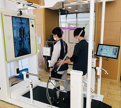 早期に運動機能やADL自立度を向上させることを目的に、楽しくモチベーションを保って訓練ができる新しい治療法として、ロボットを用いたリハビリテーションを行っています。